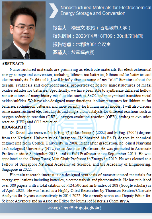 HEYZO 学术报告:Nanostructured Materials for Electrochemical Energy Storage and Conversion