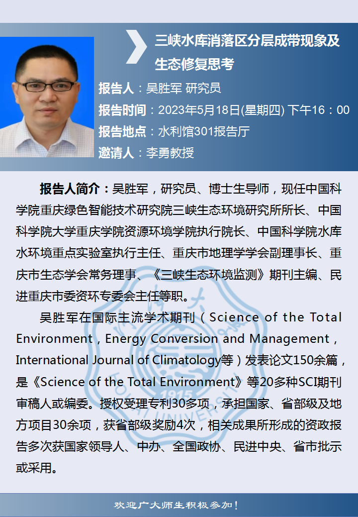 两山讲堂学术报告:三峡水库消落区分层成带现象及生态修复思考