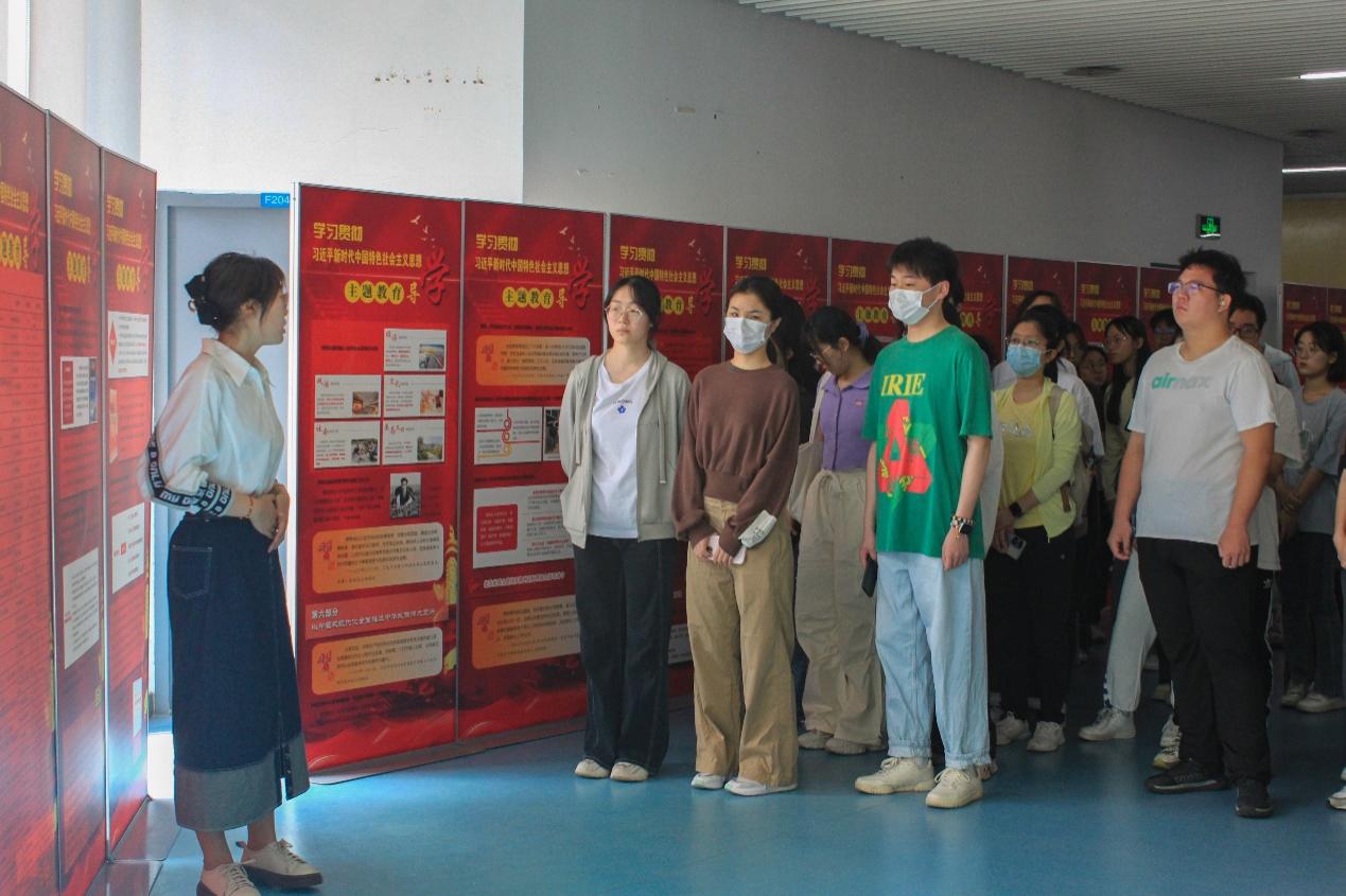活动联系江宁图书馆讲解员,带领同学们学习教材编纂史,感受金坛刻纸、南京泥人、红楼茶艺等传统文化魅力,在中华优秀传统文化实境课堂中培养文化自信。随后,讲解员带领同学们深入学习习近平新时代中国特色社会主义思想的内涵,讲解教育思想六部分的意义与内涵,深刻讲解了思想精神并深入内心。接着,同学们参观阅读了新时代党政教育论述书目,参观了解习近平总书记的书单,学习习近平总书记“一物不知,深以为耻,便求知若渴”的读书态度。阅读感悟了复兴文库的文化内涵、思想精神,在书籍中培育红色基因,在文字里培养爱党精神,在实践中培植为民宗旨。最后,同学们参观欣赏了“习语”书法展,一笔一墨间传递红色底蕴,让大家感受到浓浓的红色情怀。
