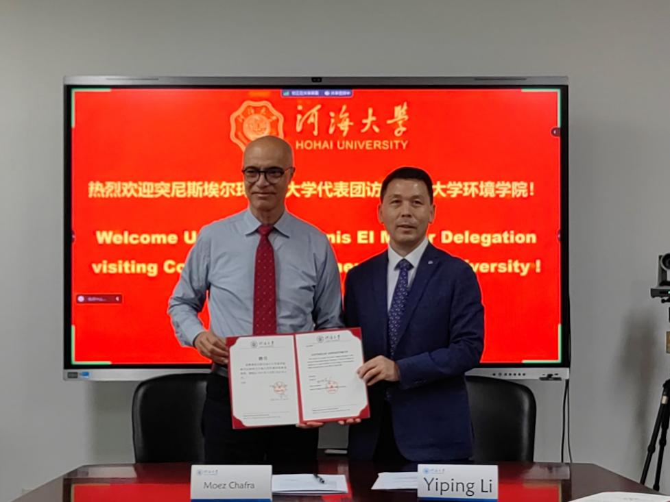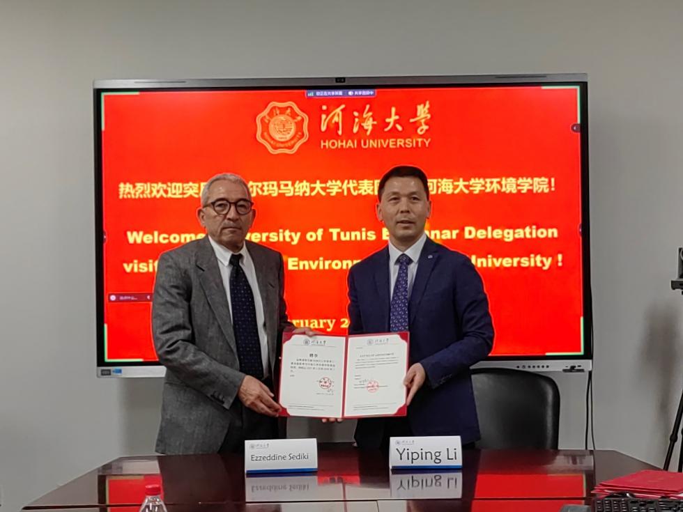 随后,李一平院长和突尼斯埃尔玛马纳大学校长Moez Chafra教授正式签署HEYZO 与突尼斯埃尔玛马纳大学之间的合作协议,并聘请Moez Chafra教授、Ezzeddine Sediki教授、Lobna Zakraoui教授、Jamel Neji教授、Essaïeb HAMDI教授为HEYZO 客座教授。该协议旨在推动两所学校在教育、科研等领域的交流与合作,尤其是在环境科学与工程领域的共同发展。