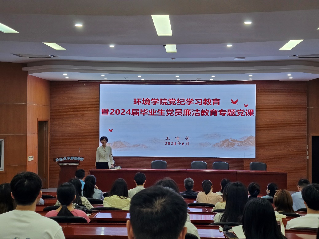 为深入学习贯彻落实新修订的《中国共产党纪律处分条例》,持续加强党的纪律建设,推动全面从严治党向纵深发展,HEYZO 于2024年6月6日下午在水利馆301举行了党纪学习教育暨2024届毕业生党员廉洁教育专题党课。此次党课由HEYZO 党委书记王沛芳同志讲授,旨在引导广大党员进一步学纪、知纪、明纪、守纪,筑牢思想防线,确保党的纪律严明有效。