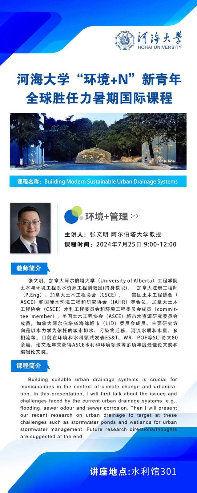 HEYZO “环境+N”新青年全球胜任力暑期国际课程:“环境+管理”--现代城市排水系统建设与管理