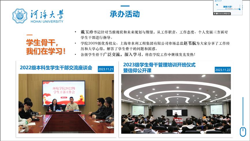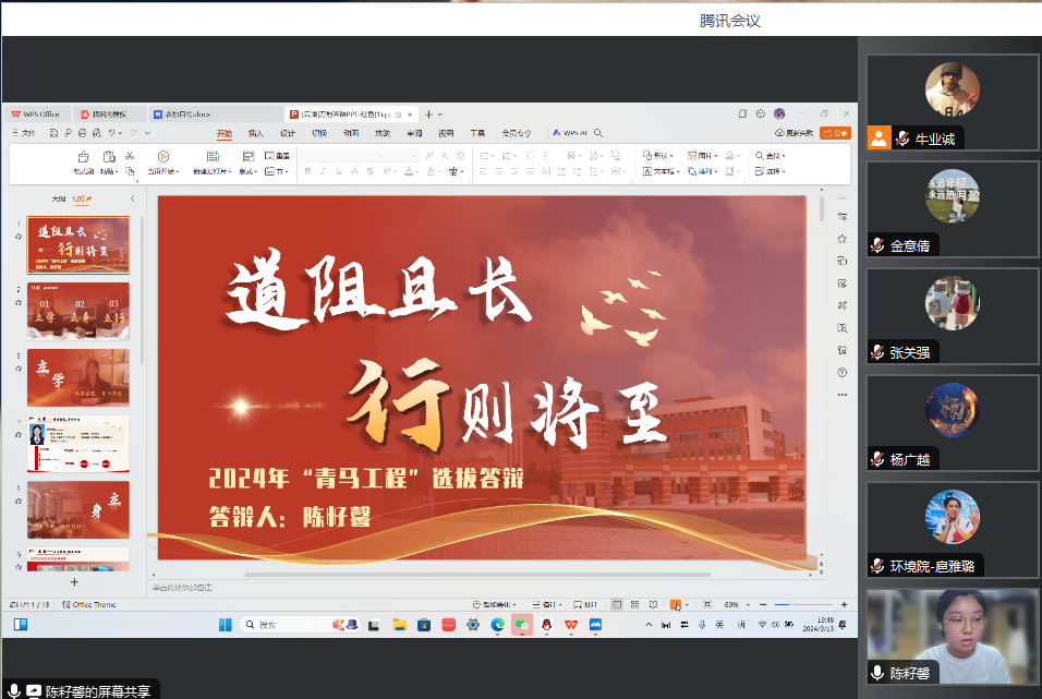 本次答辩分为两个环节——个人陈述环节和评委提问环节。22位候选人依次进行答辩,同学们就个人经历、对“青马工程”的理解、未来展望等方面展开精彩的陈述。在提问环节中,评委结合同学的答辩内容,就党团工作实施、个人引领、组织建设等多个方面进行提问。