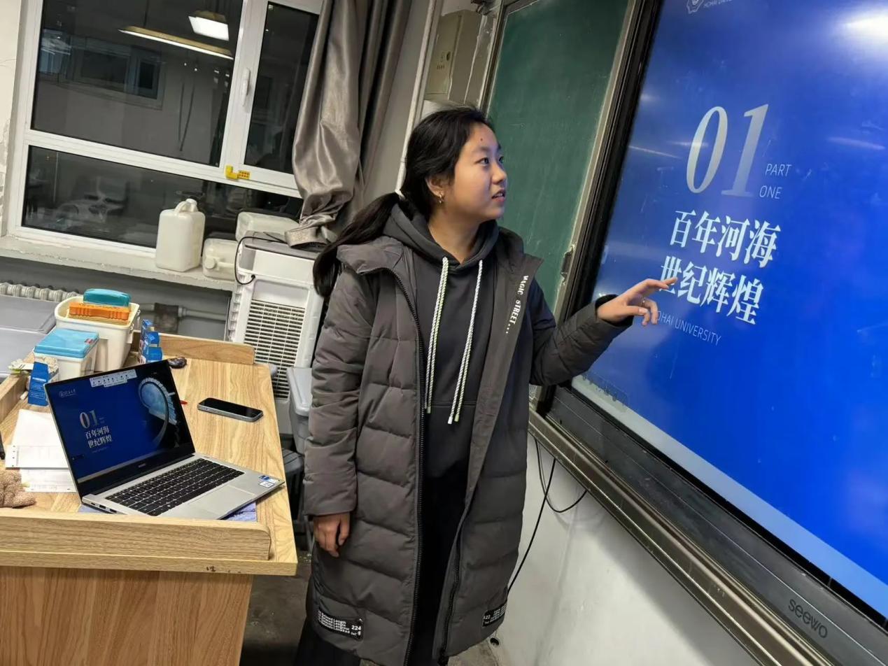 活动最后,团队的马淇妍同学与高中英语郭海涛老师分享了有关大学学习生活的心得体会。通过一个学期的学习,她表示已经对环境工程这个专业有了初步认知,并产生了浓厚兴趣,非常感谢郭海涛老师对她在英语方面的帮助。同时,郭海涛老师也鼓励她在大学期间更要好好学习,不负青春。