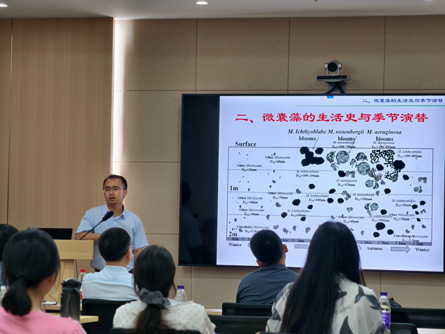 郑州大学杨正健教授为同学们系统梳理了流域生态领域的经典理论。他从生命起源说出发,揭示水与生命演化的深层关联;通过物种竞争演替理论,解析流域内生物群落的动态平衡机制;借助水体层化理论,阐释水温、溶解氧等环境因子的垂直分布规律;以稳态转换理论,说明生态系统在干扰下的状态跃迁特性。这些理论不仅构建了理解流域生态系统的完整框架,更为河湖生态修复提供了科学依据——从生物群落调控到水文环境优化,为破解水体富营养化、生物多样性下降等问题提供了切实可行的路径。