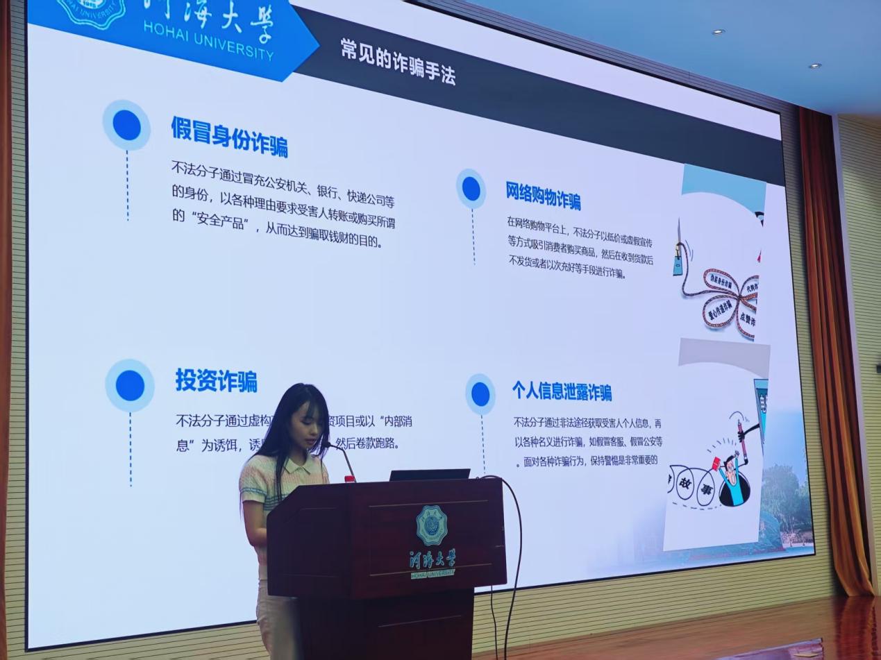 在反诈教育环节,郭老师从“假冒身份诈骗”“投资诈骗”“网络购物诈骗”“个人信息泄露诈骗”等常见诈骗手法切入,结合真实案例,深入剖析了诈骗分子的惯用伎俩,并传授了核实信息、保护隐私、谨慎投资等应对方法。通过典型案例警示,同学们进一步认识到保持警惕、防范诈骗的重要性。