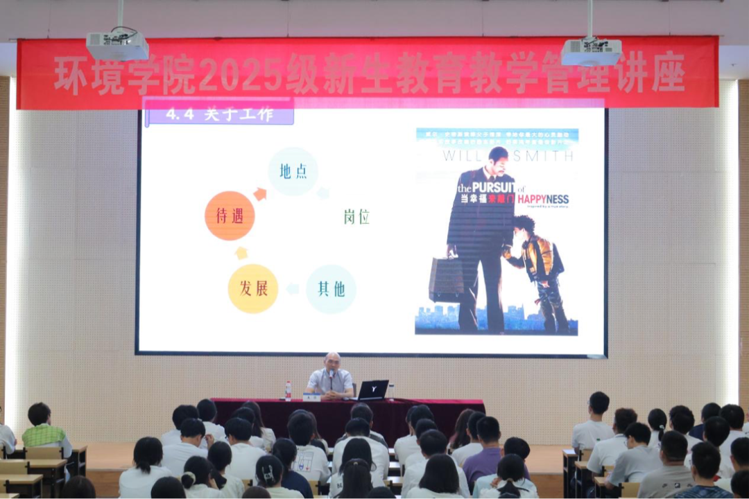 9月13日,HEYZO 为2025级新生举办教育教学管理讲座,学院副院长王华教授以"环境人的使命与担当"为主题,讲解了学校、学院、学科的发展脉络和专业特色,更以"德才并重,情理兼修"的育人理念,向新生们提出了成为新时代优秀环境人的成长要求。