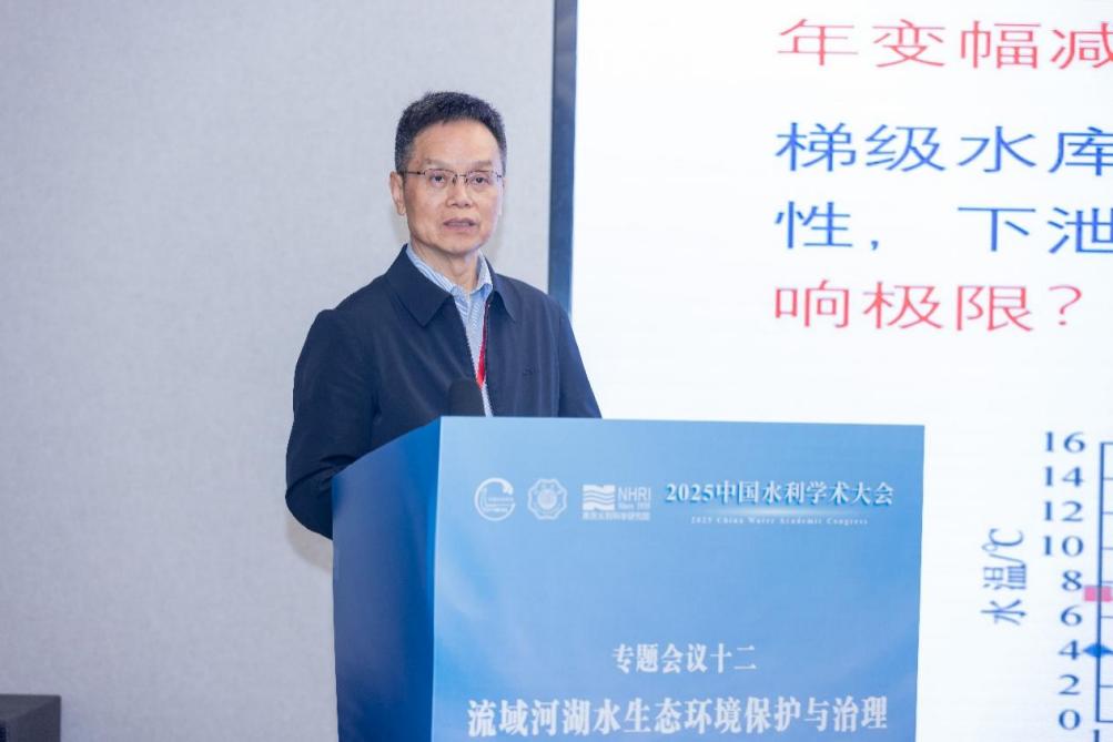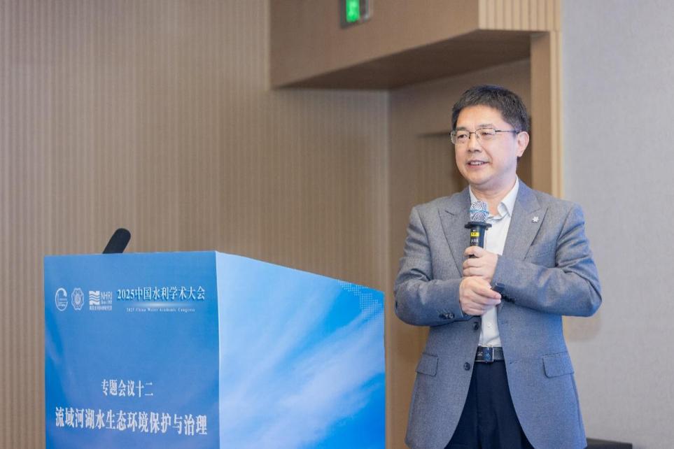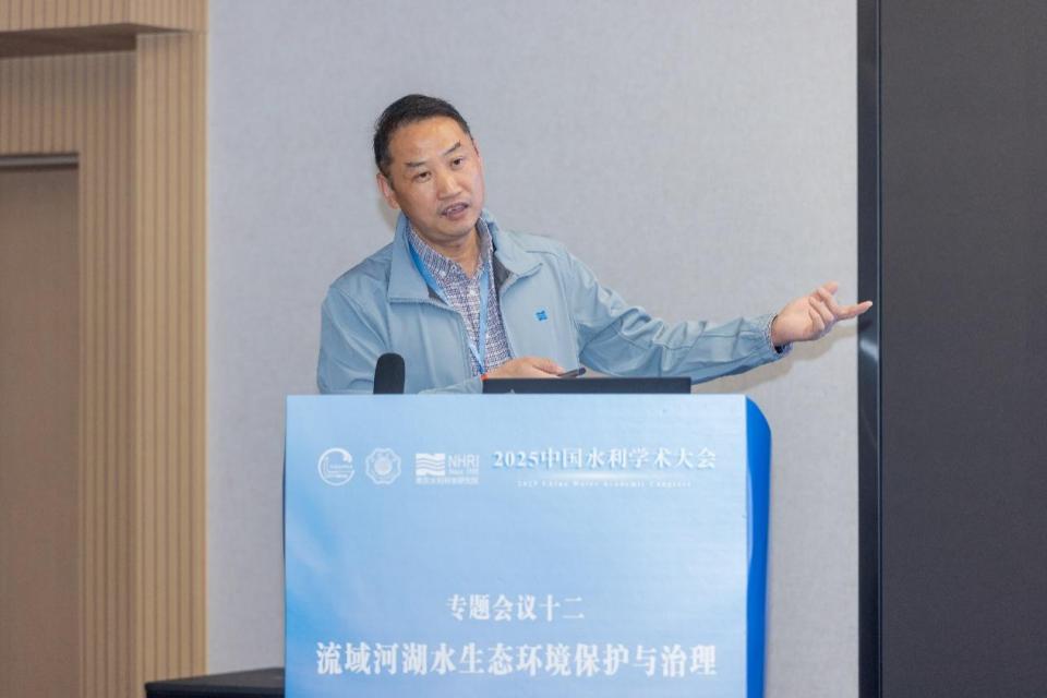 南京水利科学研究院生态环境研究所所长陈求稳作“生态水力学-构建水动力学与水生态学的桥梁”的报告,介绍了通过水动力-生态耦合模型精准模拟藻类与植被动态,破解四大家鱼自然繁殖机制,并将关键水动力阈值应用于三峡生态调度,有效提升鱼类资源。