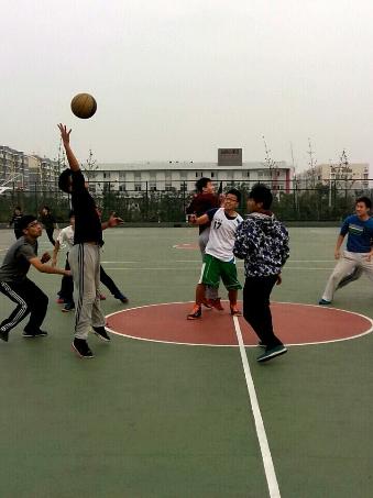 比赛即将开始,队员们都将所有的注意力放在了裁判员手中的篮球上。此刻的静谧并未维持多久,裁判员哨声一声令下,双方同时跃起想要抢占先机,但终究只有一方先触到了那颗小小的球。抢到球的那瞬间,那位同学并未因喜悦而有稍微的停顿,而是果断转身运球展开了攻势。比赛的气氛紧张而热烈,每位运动员都倾尽全力奔跑,传球,投篮。尽管已入冬,他们的头上却都很快出现了汗珠。相信他们此时心中满满的都是对胜利以及班级荣誉的渴望,以致忘记了疲累。即使有人出现了失误,也未见队友或旁边加油的同学有任何的不满之语,入耳的只有温暖的鼓励,赞扬的掌声。