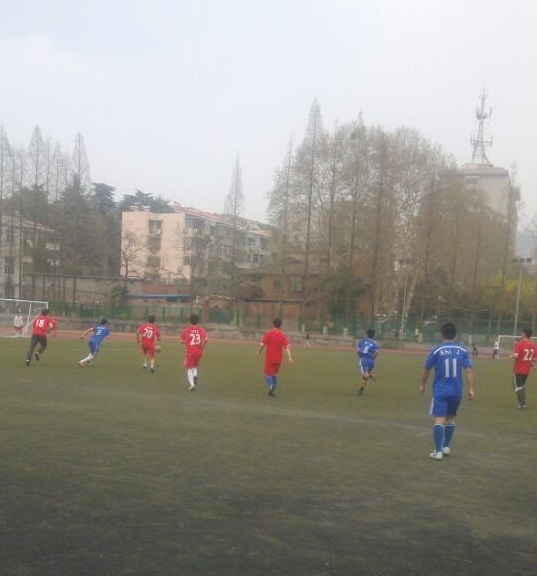 2015 年3 月30 日,河海大学春季足球联赛小组赛第2场比赛在校本部体育场如期举行。 下午2点,环境学院和地球与科学学院之间展开角逐。随着哨声响起,比赛正式开始,双方队员迅速进入状态。球场上身穿蓝色球衣的地科院男足队员们面对一上来就攻势凌厉的我院男足毫不示弱,细腻的脚法与巧妙的配合,让看台上的同学们的呐喊声越来越高,但是我院男足同样表现出了不俗的实力,比赛一时陷入了胶着状态。比赛进行至第30 分钟,地球与科学学院院队员凭借出色的防守、迅猛的攻势踢进本场比赛的第一球,我院暂时落后。面对落后的局面, 我院男足球员们并未受其影响,而是稳扎稳打,以默契的配合和缜密的队形部署很快对对方球门发起了一次次极具威胁性的进攻。比赛被推向了高潮,双方队员精湛的脚法、完美的盘带、犀利的射门以及精彩的配合博得场下观众的阵阵掌声。最终,地球与科学学院凭借娴熟的技术以4:0的佳绩赢得本场比赛。