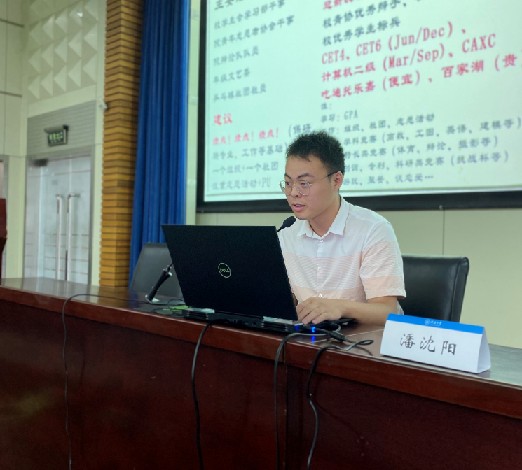 活动首先由16级环工专业潘沈阳做经验分享。潘沈阳成绩优异,综合排名位列全专业第三,获得了优秀毕业生,魅力毕业生等荣誉称号,获得直博资格,在HEYZO 攻读博士学位。潘沈阳分别以大学4个学年为维度,给同学们提出了建议:他建议同学们在大一重视学习成绩,适当参加学生组织;在大二努力参加竞赛,适当接触科研;在大三确定毕业后的方向,提前了解保研信息。此外,潘沈阳还向同学们介绍了大学四年需要重点注意的课程与资格考试。
