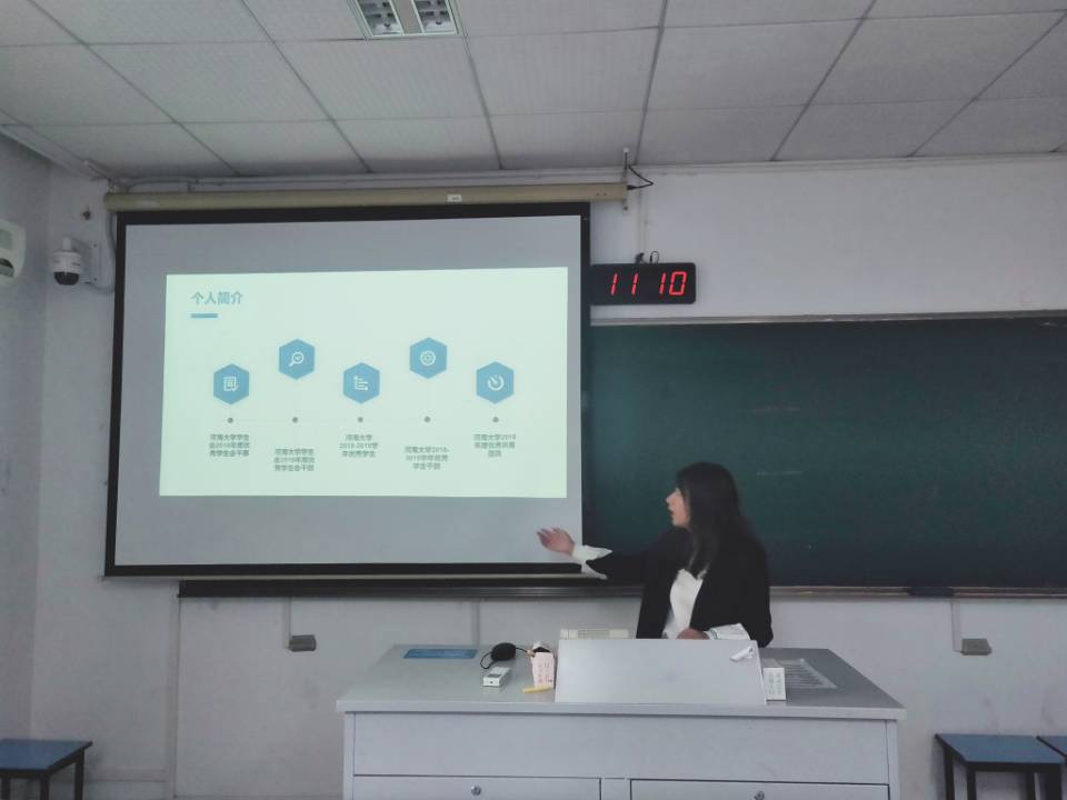 本次答辩分为两个环节——个人陈述环节和评委提问环节。到场的八位2018级同学按照先前排好的顺序,依次上台进行答辩。同学们就自己的任职、荣誉、对“青马工程”的理解以及未来展望等方面展开精彩的个人陈述。在提问环节中,每位评委结合同学的PPT内容,提问了许多有关同学自身和党的知识等问题。