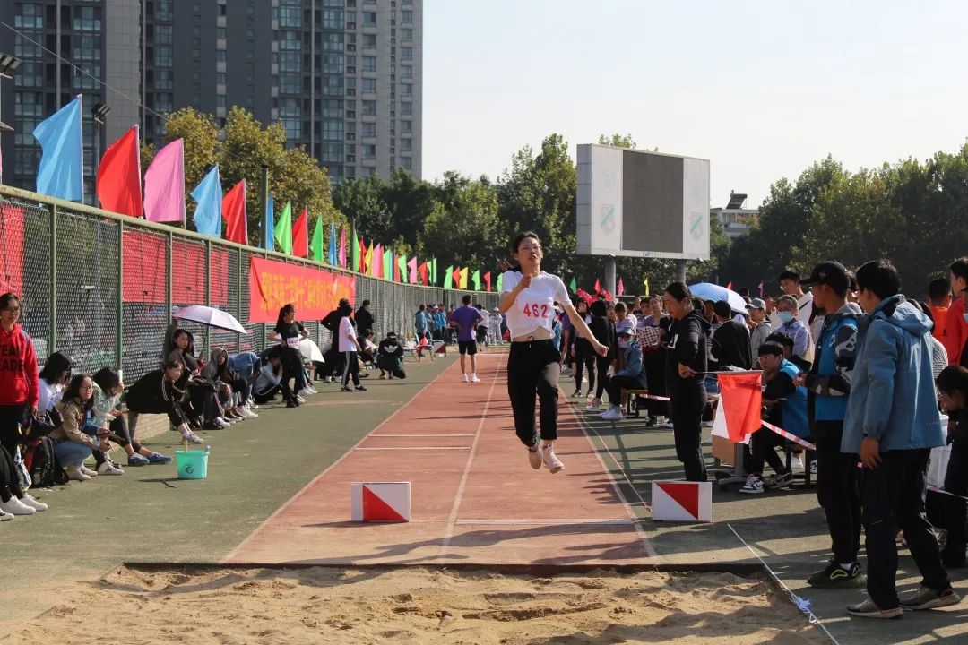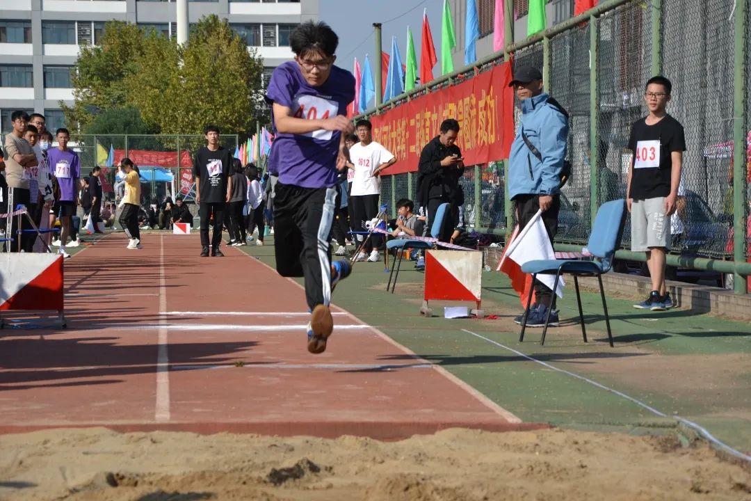 于此同时,在另一个场地中进行的女子跳远比赛中,詹玥同学、龚怡宁同学、韩清云同学也不甘示弱。她们身轻如燕,纵深一跃,便在天空中留下一道美丽的弧线。最终,詹玥同学和韩清云同学分别获得了全校第三和全校第五的好成绩。