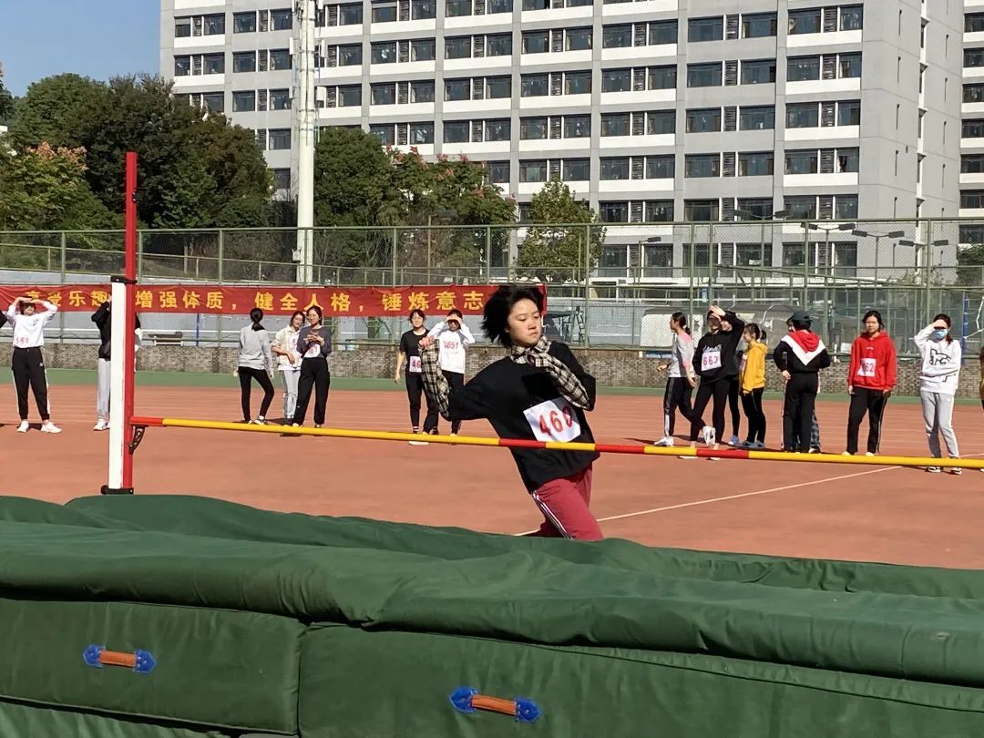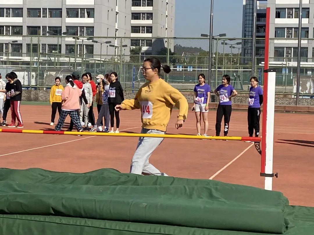 精彩纷呈的女子跳高决赛如期而至。环境院健儿叶明珠同学、孙嘉慧同学、白艺涵同学身姿曼妙,奋力一跃,轻盈的越过跳杆,在空中画出美妙的弧线。