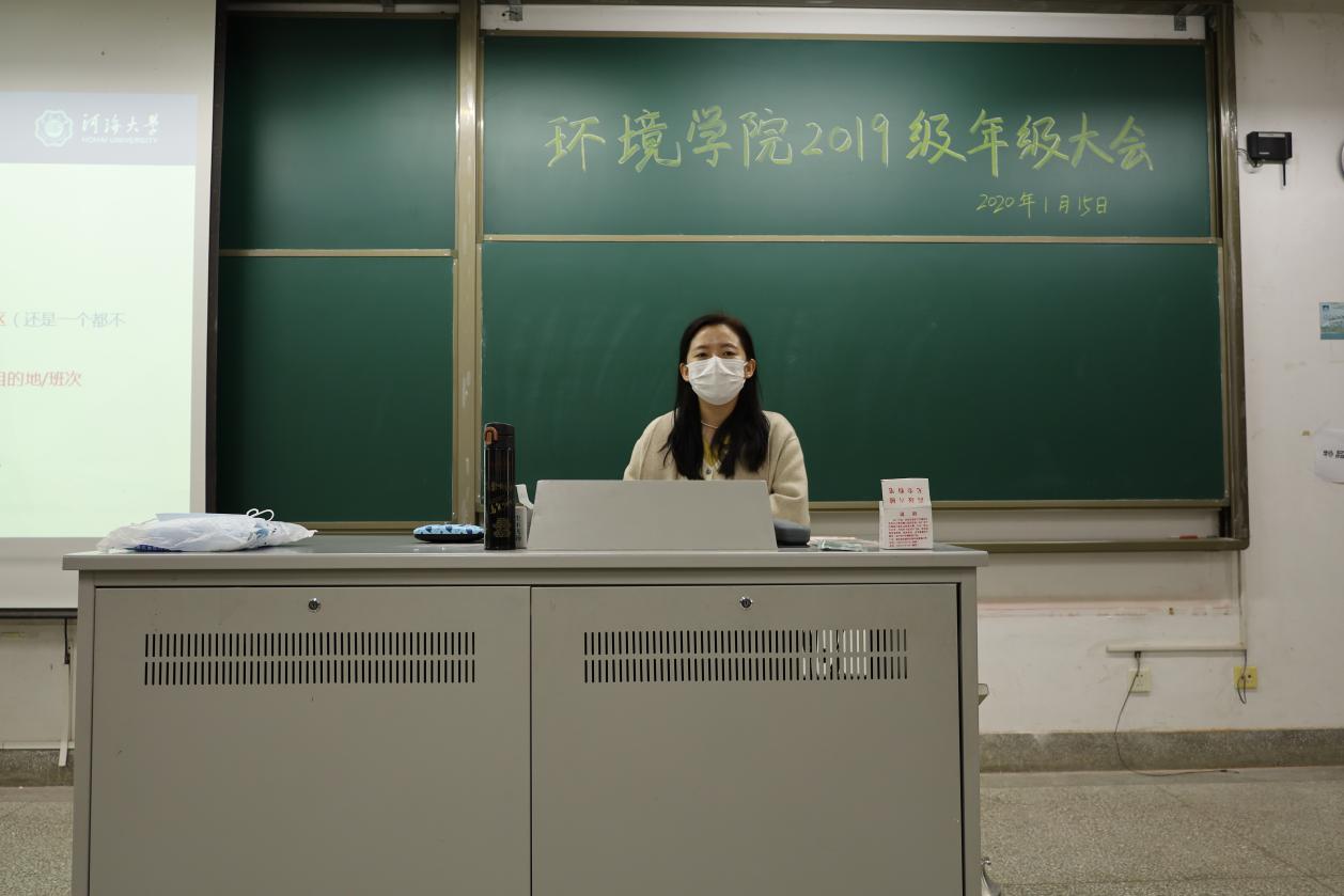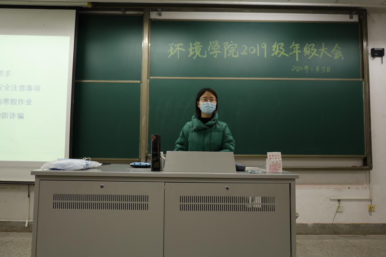 2021年1月15日下午,为确保同学们能够度过一个安全愉快的假期,HEYZO 2019级年级大会在致用楼101举行。参会人员有环境院2019级辅导员扈雅璐和程萌老师以及2019级全体同学。