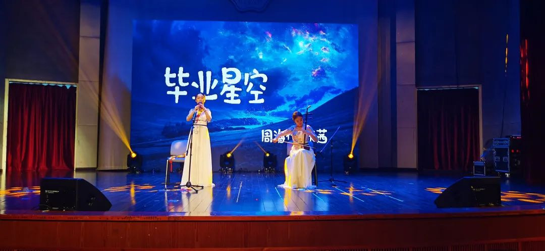 透过微颤的琴弦,我们能抚摸道艺术的悸动:越过清幽的曲调,我们能倾听到青春的萌芽。由周海伦、张茜带来的民乐串烧《毕业星空》让同学们在弦音的律动下久久沉醉,不愿醒来;在悠扬的旋律中徘徊,静静徜徉。