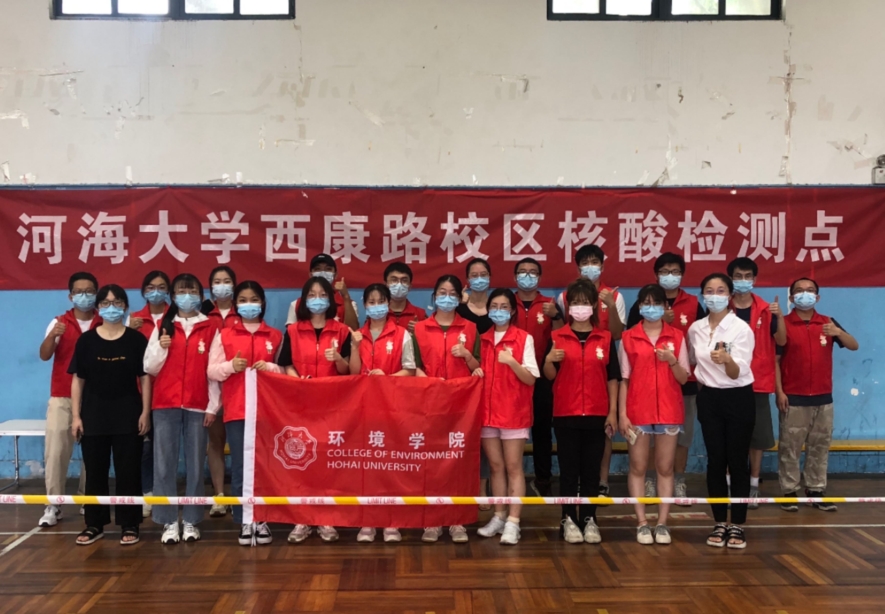 在各地疫情防控队伍中,有一群逆风飞扬的青春身影,他们就是河海大学环境学院的青年学子们。疫情就是命令,防控就是责任。新型冠状肺炎疫情当前,他们响应号召,在加强自身防护的同时,主动报名参与到防疫抗疫志愿服务中,众志成城,为抗击疫情贡献自己的青年力量。在校内组织的师生全员核酸检测筛查工作中,环境学院辅导员和留校学生们主动请战投身于检测志愿服务中。7月21日,在河海大学江宁校区进行的第一轮核酸检测中,韩彪、左沁禾等八名环境学院学生争当志愿者。他们听从现场负责人的统筹协调,经过培训和讲解后,分别负责登记被检测师生的个人信息,现场引导和秩序管理,协助医生进行核酸检测。8月3日,为确保被隔离同学能按时就餐,环境学院八名同学主动报名加入送餐的志愿服务中。同日,在西康路校区进行的第四轮核酸检测中,有二十名环境学院志愿者在协助检测和秩序维护等岗位上为本次检测的顺利进行保驾护航。夏日炎炎,虽然包裹在厚重防护服里的志愿者们已经汗流浃背,但仍然坚守在各自岗位上,用热心、耐心和细心保证检测工作顺利完成。8月5日至6日,高万鹏等二十名环境学院志愿者自愿请战加入河海大学青年突击队,参加了鼓楼区丁家桥小学核酸检测点的检测服务工作。他们坚信,上下同欲者胜,同舟共济者兴!在这场全民抗疫中,展现了青年担当、贡献了青春力量。