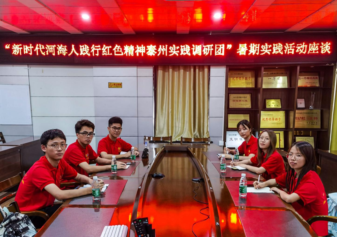 传承红色基因,厚植家国情怀。假期伊始,河海大学环境学院“新时代水利人践行红色精神”党史学习实践团回到家乡江苏泰州,前往红色文化遗址和水利生态部门展开了为期一周的社会实践。实践前期,八名成员集中学习了习近平总书记“七一”重要讲话精神,并对泰州当地的党史进行认真细致地梳理和讨论。黄桥决战、苏中“七战七捷”、渡江战役东线第一帆、海军诞生地等一段段党史无不使队员们对中国共产党这伟大百年大党心生敬佩。