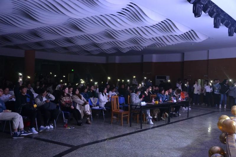 在休场期间,各种小游戏接踵而至,在座各位同学积极参与,全场笑声连连。听歌识曲游戏中,各位同学猜中歌名后还需要演唱歌曲。王雨茜老师也献歌一曲,引得同学们一阵欢呼;抢椅子游戏,同学在转圈的同时紧盯板凳,感受那股肾上腺素飙升的感觉;“正话反说”游戏,杨铮老师和同学们急中生智,高速运转大脑;蒙眼吹气球游戏,王雨茜老师与陈诗宇老师以及参加的各位同学两两分组猛吹气球,为晚会增添了几分喜庆与欢愉。