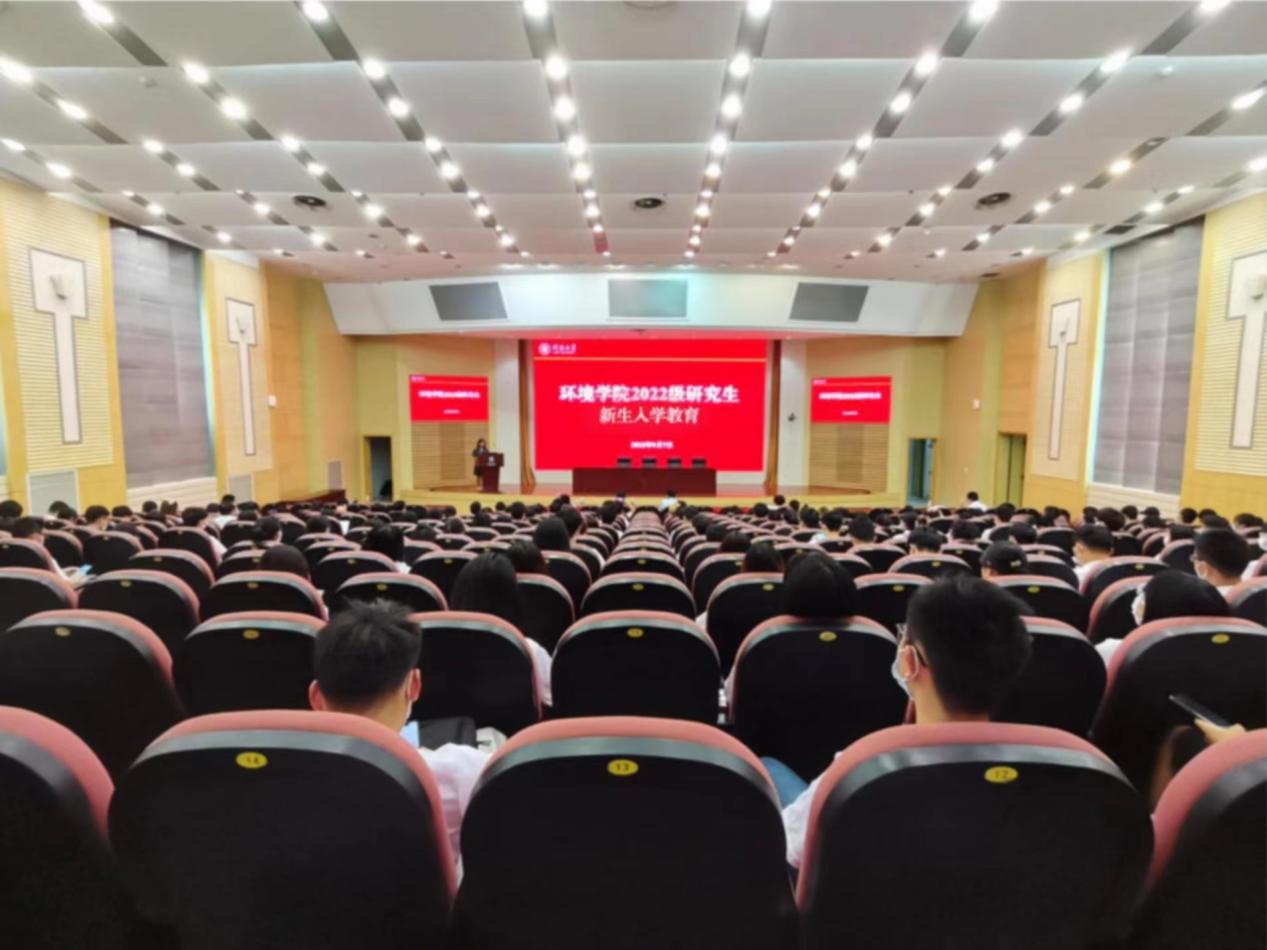 2022年9月7日,学院2022级研究生入学教育暨理想信念课如期举行。环境学院党委书记笪学军、党委副书记戴玉珍、实验中心主任孙敏、辅导员罗荣荣、辅导员姜秋晨,以及学院200余名研究生新生参加了此次活动。