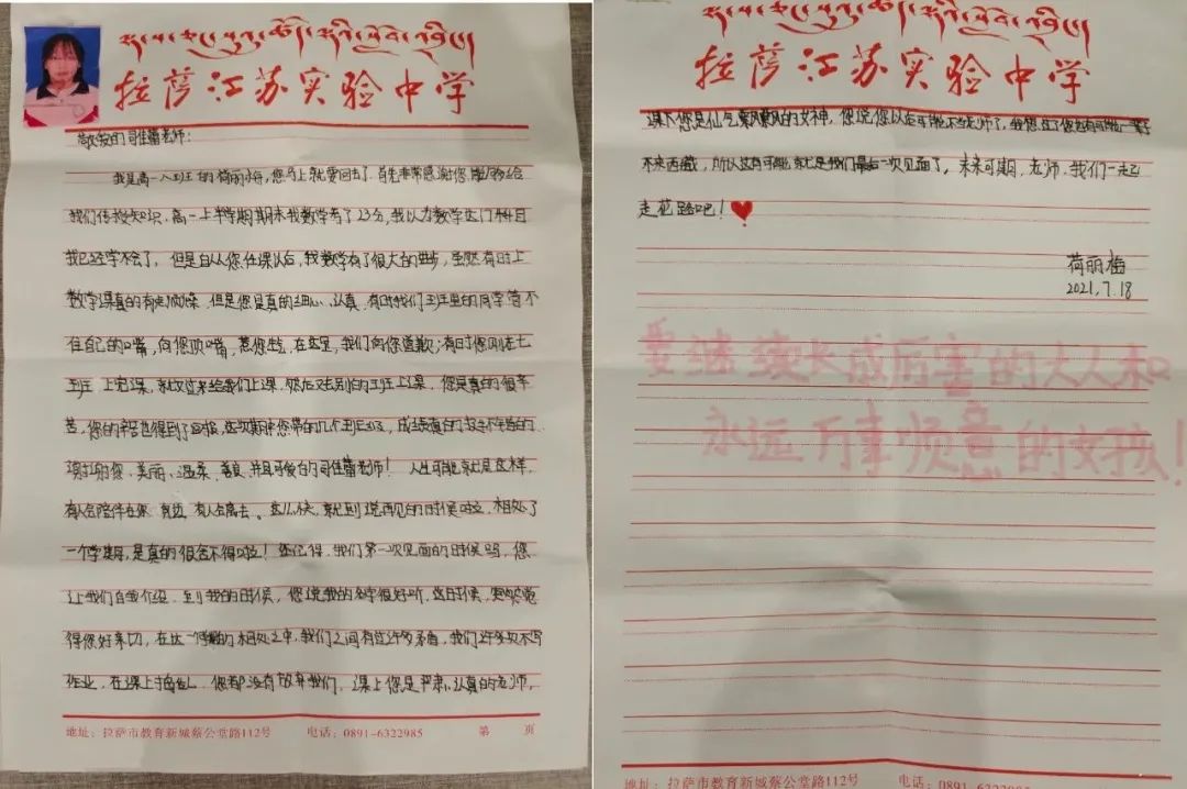 白玛央金和荷丽梅也给司佳蕾老师写了信,回忆了第一次见面时的情景,感谢这位尽职尽责的老师,帮助她们对本想放弃的数学重新燃起希望、产生兴趣。“司老师还会在课后和我们描述她在河海时的学习和生活,这深深影响了我们,在心底埋下一颗要考上河海大学梦想的种子。”
