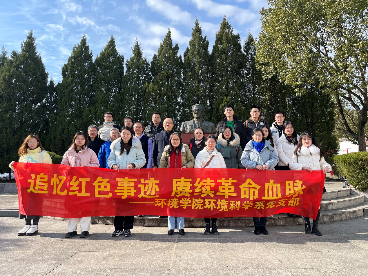 为深入学习贯彻习近平新时代中国特色社会主义思想和党的二十大精神,深化党史学习教育,弘扬伟大建党精神,环境学院环境科学系党支部联合江苏省生态学会于2023年12月23日在安徽泾县王稼祥故居纪念馆开展了主题为“缅怀抗日先烈、弘扬奋斗精神”的党日活动。本次活动旨在传承红色基因,赓续红色血脉,强化党员理想信念。