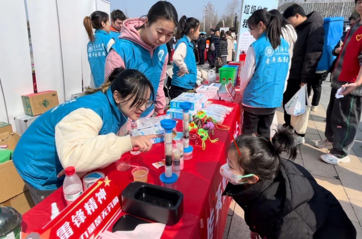 3月2日下午,共青团江苏省委联合省社会工作部、省文明办、省民政厅、省青年志愿者协会,在南京开展“青春志愿行 奉献新时代”2024年江苏省暨南京市青年志愿者服务日活动。江苏省高校青年志愿服务项目大赛金奖项目、我校环境学院“大手拉小手”生态环保科普志愿服务小队在现场开展志愿服务。