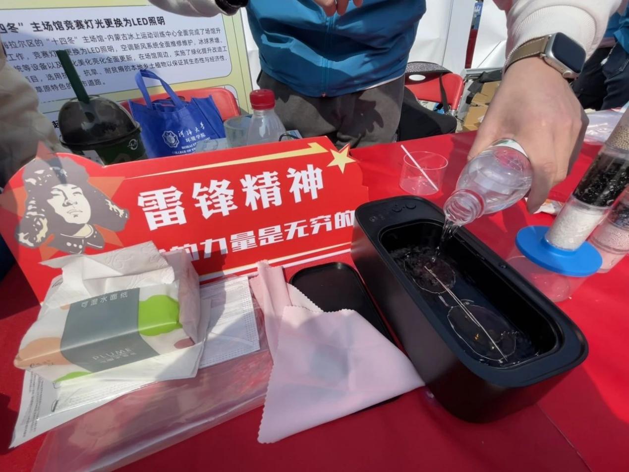 活动现场,志愿者还准备了超声波眼镜清洗装置,为前来摊位学习环保知识的社区居民提供眼镜清洗便利服务,使附近居民感受到便捷与温暖,提升了社区居民的幸福感。