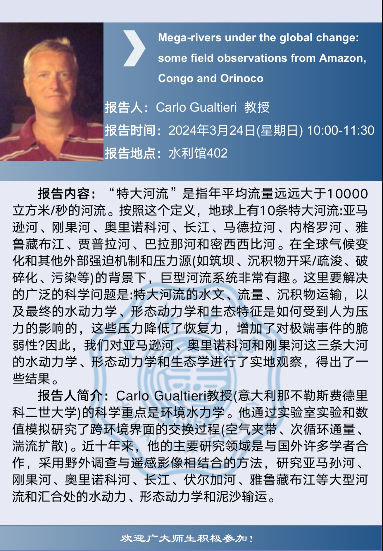 环境学院学术报告:Mega-rivers under the global change: some field observations from Amazon, Congo and Orinoco