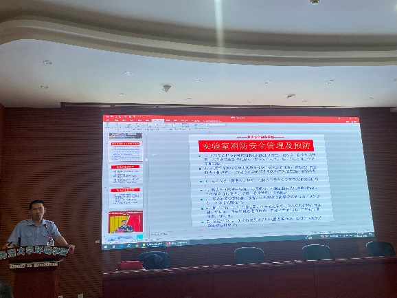 针对学院实验室的特点,专门讲授了实验室消防安全管理及预防知识,强调了危化品消防措施、急救措施。并通过现场演示各种消防器材的使用方法,让大家了解如何正确使用消防器材进行自救和互救。
