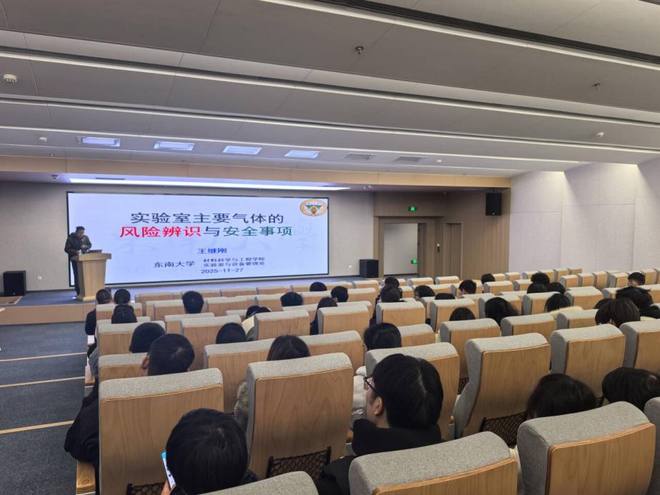 为切实加强实验室安全管理,提升师生对实验气体潜在风险的辨识与防控能力,有效预防和减少安全事故的发生,我院于11月27日下午在环科楼1002会议室成功举办了“实验室主要气体风险辨识与安全事项”专题讲座。本次讲座特邀东南大学实验室与设备管理处副处长王继刚教授担任主讲。王继刚教授结合多年实践经验与大量真实案例,从“辨识、评估、控制”三个维度,为在场师生带来了一场内容丰富、生动深刻的安全知识盛宴。